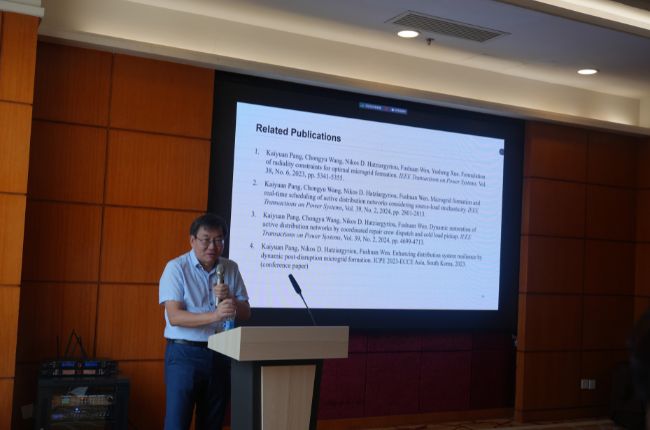 During the keynote speeches, Professor Fushuan Wen from Zhejiang University, China, delivered a keynote speech on Post-Disruption Stand-Alone Microgrid Formation, Operation Scheduling, and Restoration in Renewable-Rich Distribution System.